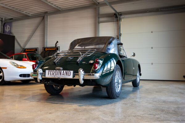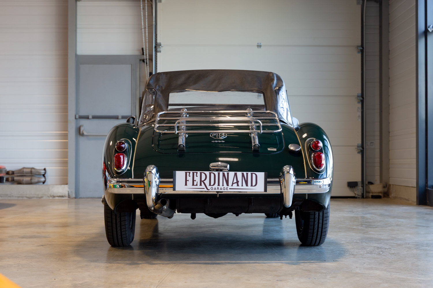 En synthèse : Origine USA, cette MG A 1600cm3 de 1960 a commencé sa vie dans l’Oregon sous une teinte rouge « indien » avant d’arriver en Europe aux Pays-Bas à la fin des années 2010. Elle a été restaurée par Paul’s Classic Cars puis achetée par une concession MG en région Parisienne pour être exposée dans un showroom depuis 2020. Elle a été intégralement révisée début Avril 2025. Prête à prendre la route.